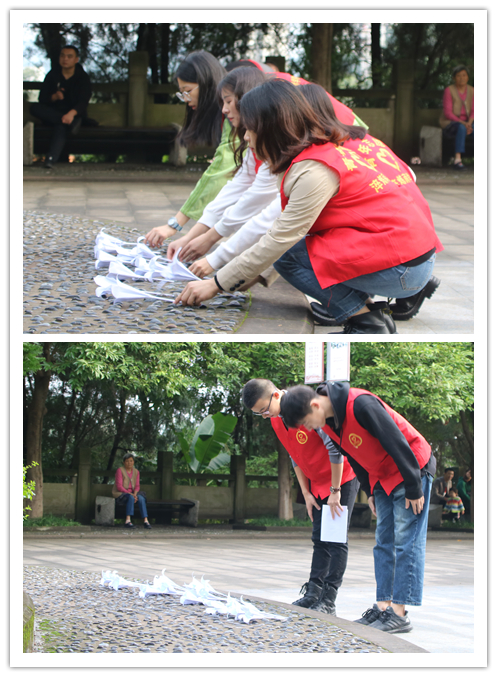青山埋忠骨,鲜花祭英烈。同学们逐一在革命纪念碑下敬献了亲手制作的小白花,一朵朵纸花寄托着同学们对烈士的无限哀思,一次次鞠躬表达了同学们对于革命先烈的敬佩与缅怀。