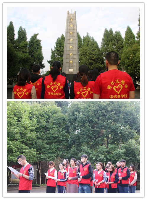 为缅怀革命先烈,传承红色基因,弘扬时代新风,提升党员同志的精神道德修养,淬炼商学院学生党支部于2019年10月23日下午四点,在合川区人民公园开展了以“烈士墓缅怀先烈情,党内人弘扬爱国心”为主题的志愿服务活动。