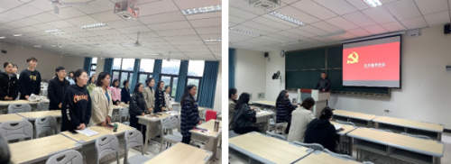 党总支书记潘显兵教授宣布数字经济与信息管理学院党总支应到正式党员41名,实际到会正式党员33名,达到参加大会实到有选举权党员的五分之四,大会准许开展。大会进行第一项,全体党员同志起立面向国旗奏唱《中华人民共和国国歌》,此次大会正式开始。