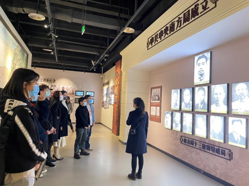 师生党员一行逐一参观展馆里陈列的珍贵资料,随着讲解员的悉数讲解,师生党员了解到在当时艰苦恶劣地条件下,以周恩来为首的革命先烈们勇拓发展之路的不易,先后组建了中共中央南方局、八路军驻重庆办事处,并同敌人展开斗争,团结一切可以团结的力量,不屈奋斗的过程。全体同志在此驻足良久,观看历史资料、革命遗物,抚今追昔,爱国之情怀油然而生。