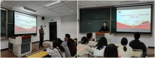宣讲中,两位老师首先带领学生们深刻认识了习近平总书记“七一”重要讲话的重大意义。他们谈到,习总书记的讲话向世界宣示了中国共产党人的政治宣言和行动纲领,为全党全国各族人民向第二个百年奋斗目标进军指明了前进方向、提供了根本遵循。讲话是一篇马克思主义中国化的纲领性文献,是新时代中国共产党人不忘初心、牢记使命的政治宣言,是中国共产党牢记初心使命、开创美好未来的时代答卷,是科学指引我们党、国家、民族开创千秋伟业的行动纲领。