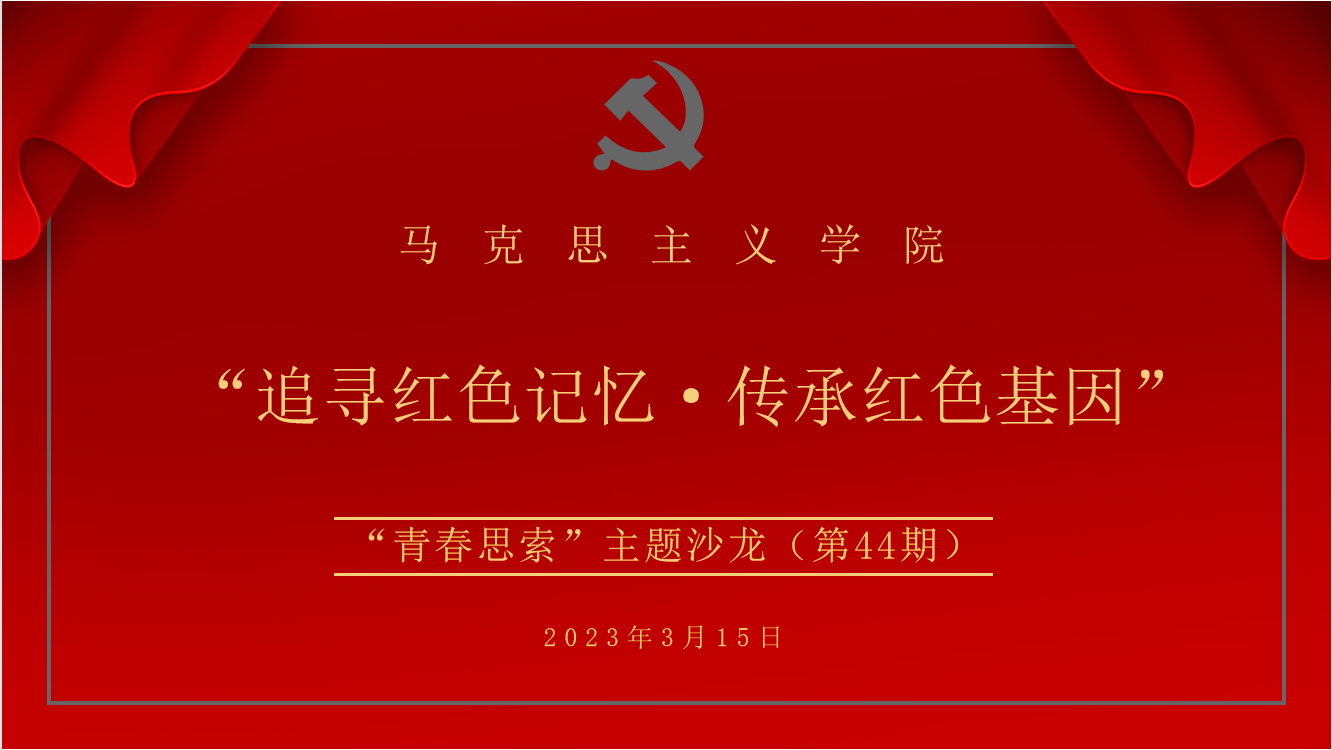 重温历史,是对初心的叩问。不忘革命历史,牢记时代使命,是时代对我们的要求。为引导青年学生铭记历史,传承先辈爱国精神、牢记历史使命、坚定理想信念,引领同学们知党恩、听党话、跟党走。3月15日下午,马克思主义学院“概论”课教研室举办了“追寻红色记忆·传承红色基因”——“青春思索”主题沙龙活动(第44期)。来自各学院二十多名同学与马克思主义学院的廖洪瑶和秦瑾两位教师共同参与到此次活动中。