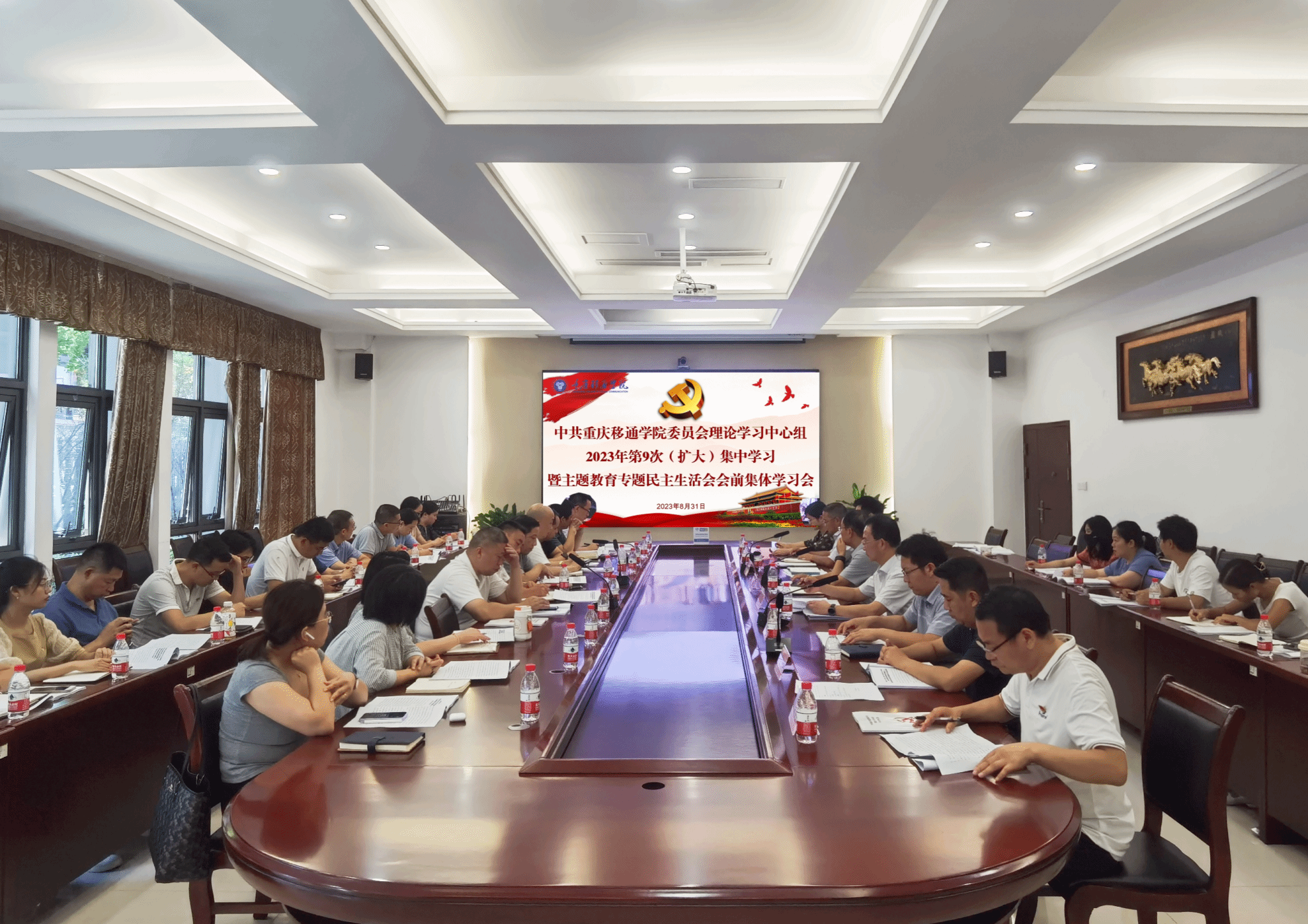 校党委书记、政府督导专员何先刚同志主持学习会议,党委理论学习中心组成员参加会议,直属党组织委员代表、各部门主要负责人列席会议,綦江校区同步开展学习。