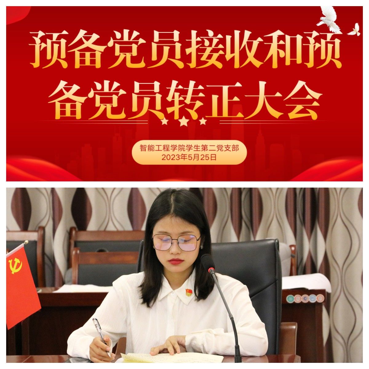 为进一步增强党的队伍建设,壮大支部力量,及时为党组织注入新鲜血液;增强基层党组织的凝聚力、战斗力、影响力,聚焦习近平总书记“努力为党育才”的初心,5月25日上午,智能工程学院学生第二党支部在梅若207召开接收预备党员及预备党员转正大会,大会由学生支部书记谭英姿同志主持。