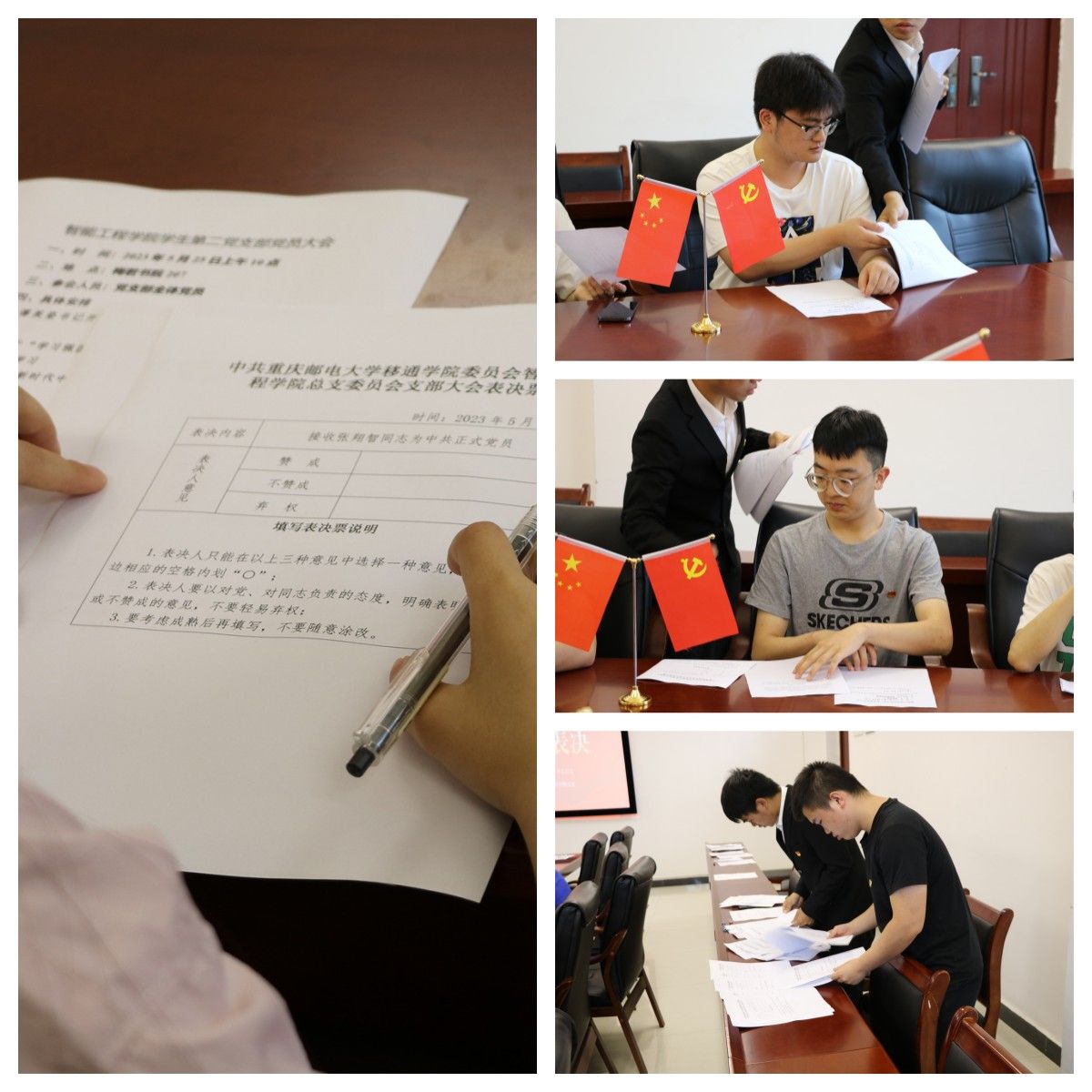 进行了预备党员转正大会。大会对4名预备党员是否符合转正条件进行无记名表决,支部书记对预备党员们考察期内的表现作出了点评,组织与会党员客观公正地进行了投票,并当场公开了表决结果。大会最终通过了邹馨颍、刘岚洁、刘诗颖、张翔智共4名预备党员如期转正的申请。