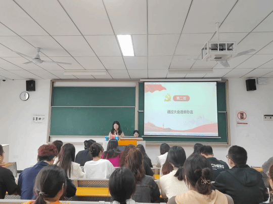 然后,全体同志起立,齐唱国歌。大会在阙小梅同志的组织下,全票通过了党支部选举办法。根据无记名投票和差额选举的实施办法,全体党员对支部委员会委员候选人进行了无记名投票,最终选举产生了第一届大数据学院学生党支部委员。支部委员会按照党章和选举流程,最终选举出阙小梅同志担任支部书记,雷淑娟同志为支部副书记,兰宇同志为组织委员兼青年委员,李进同志为纪检委员兼统战委员,蔡娜同志为宣传委员。