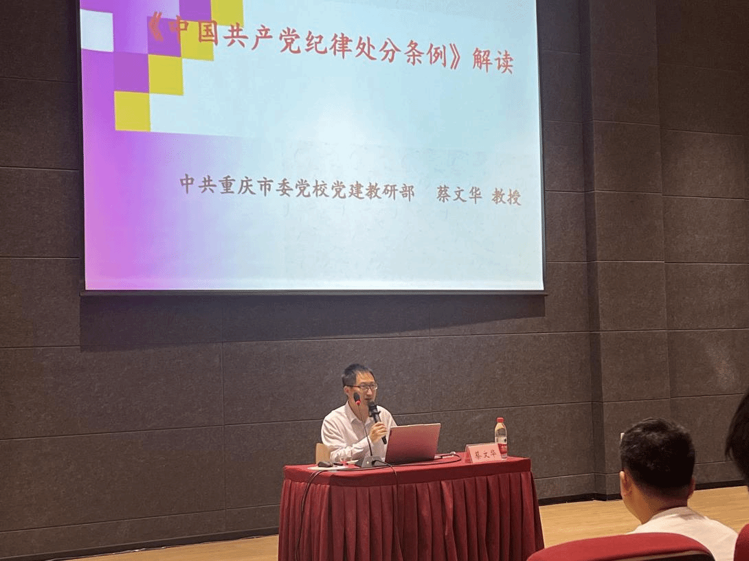 5月14日下午,学校在六度空间·105°学术报告厅开展党纪学习教育专题讲座。中共重庆市委党校、重庆行政学院党建教研部蔡文华教授就新修订的《中国共产党纪律处分条例》进行了深入解读,并强调了加强纪律建设的重要性。