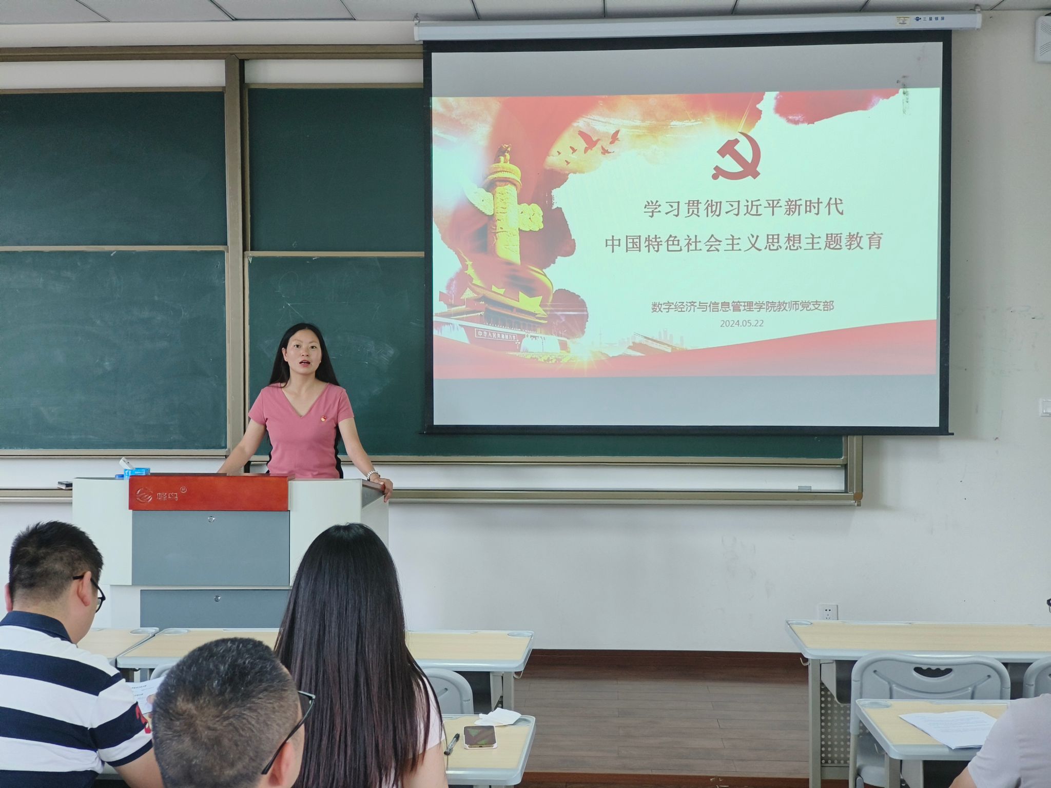 为进一步加强基层党组织建设,壮大党员队伍,提升党员素质水平,5月22日下午16:00,数字经济与信息管理学院教师党支部在双栀书院403教室召开了“学习贯彻习近平新时代中国特色社会主义思想”的主题教育暨党员发展大会。本次会议由党支部书记刘贵容主持,党支部全体党员同志参与。