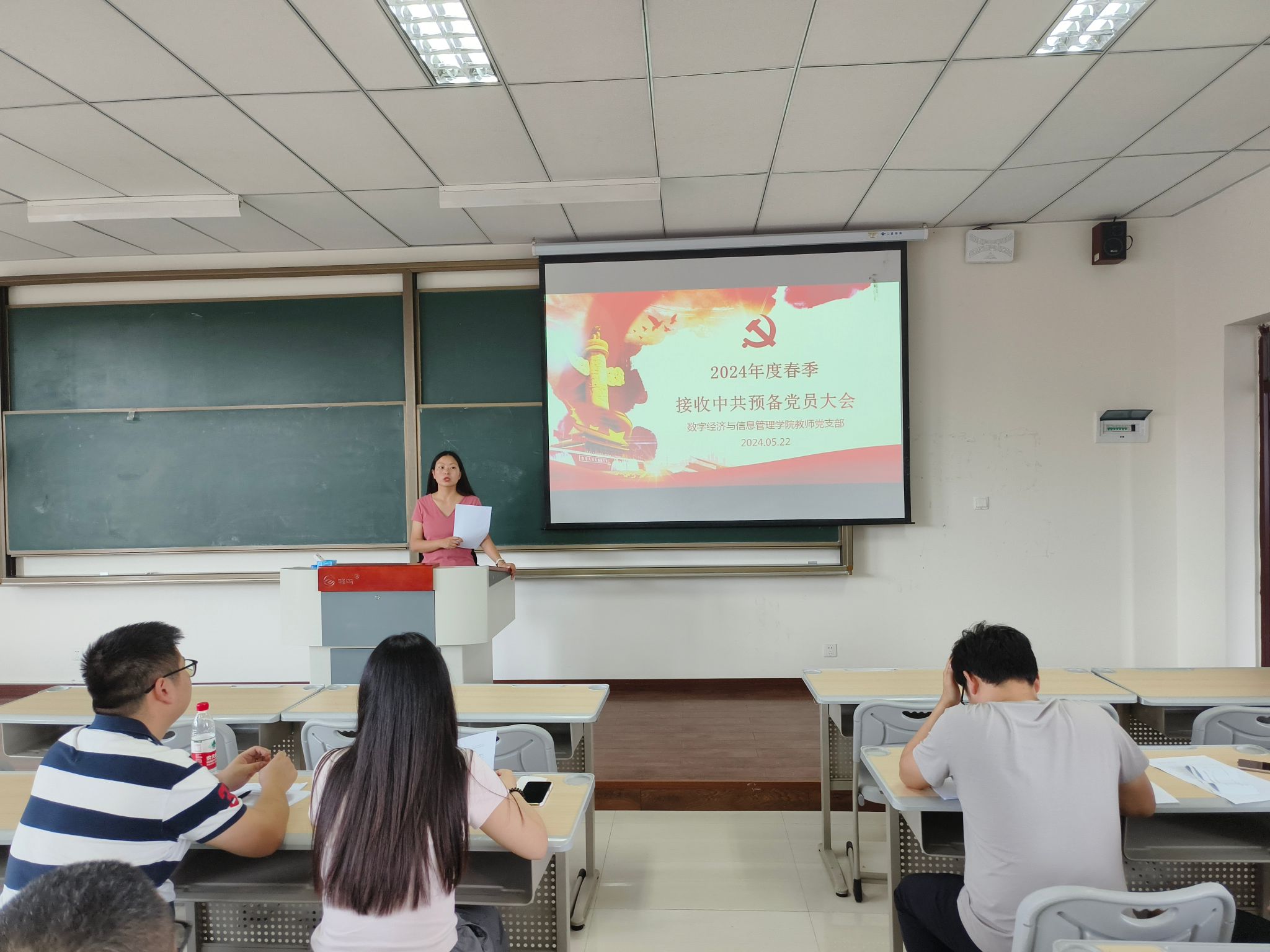 此次大会,为数字经济与信息管理学院教师党支部注入新鲜血液,进一步扩大了党员队伍。会议最后,党支部书记刘贵容对新发展的党员同志表示了祝贺,勉励支部全体党员同志在以后的学习、生活中要更加刻苦,充分发挥党员的先锋模范作用,继续发扬良好的学风作风,努力把社会主义核心价值观落到实处,开拓创新,求真务实,砥砺前行,用热情与智慧作出新的贡献。