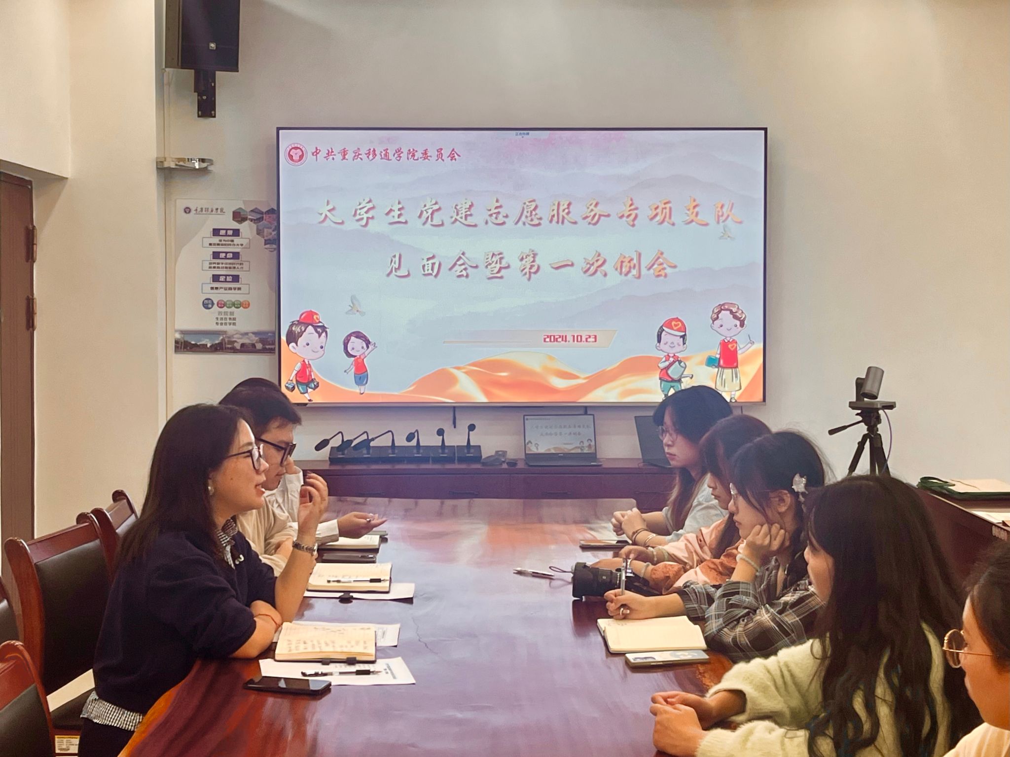 为切实贯彻党的二十大强调的完善志愿服务制度和工作体系。进一步加强党建引领工作,理顺支队组织架构设置,同时为更好地促进大学生党建志愿服务专项支队(后统称支队)内部联系与交流,进一步增强队伍凝聚力,2024年10月23日下午,大学生党建志愿服务专项支队队员见面会暨第一次例会在行政楼A417如期举行,本次活动由党委组织部杨涛老师主持。