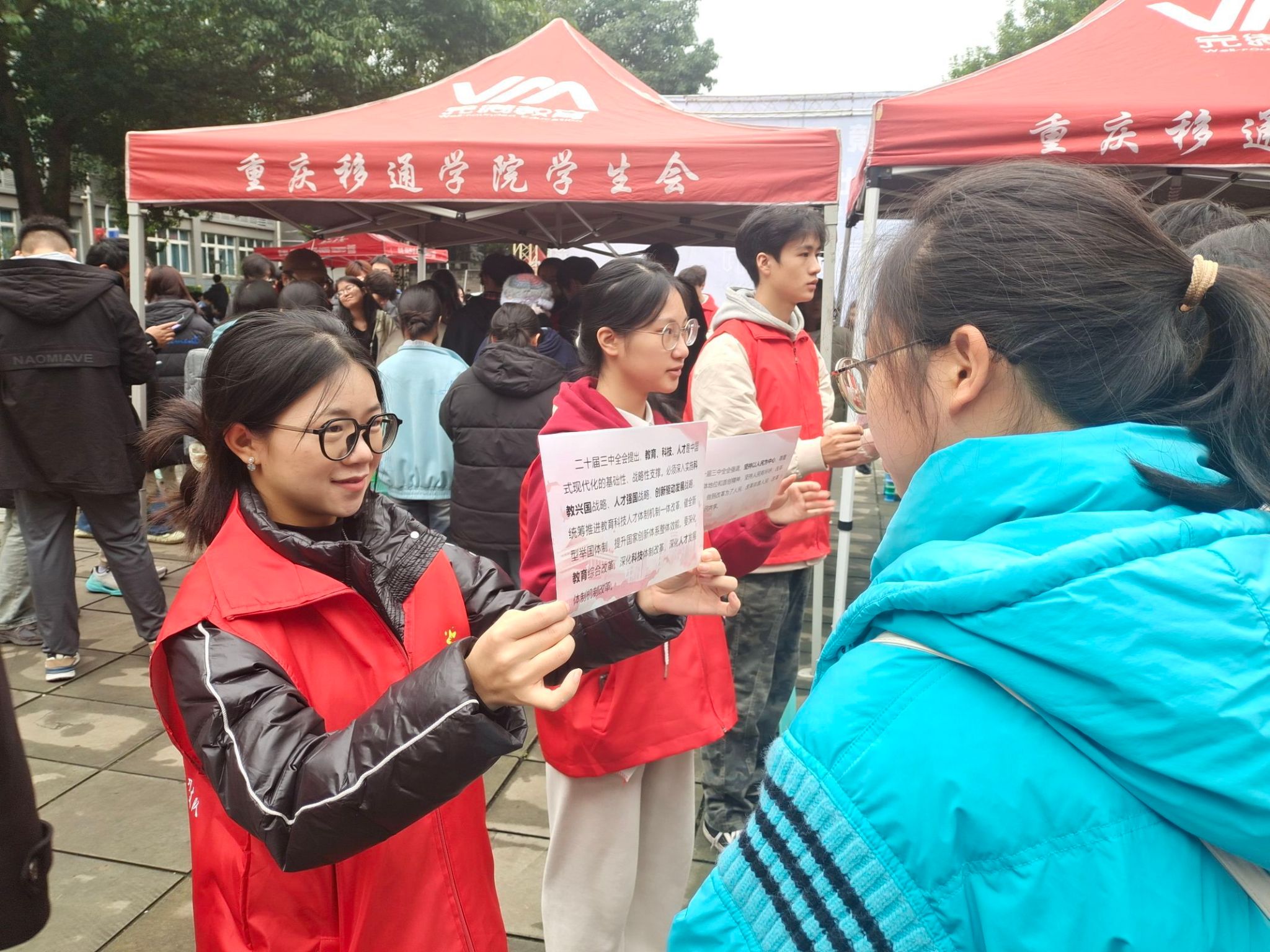 为针对学生、教师以及广大师生群体的政治理论学习的新要求,将党的重大政策和指导思想传递给青年一代,帮助同学们树立正确的价值观、世界观和人生观。重庆移通学院大学生党建志愿服务专项支队于11月22日在黄桷树广场开展了“二十届三中全会精神宣讲”活动,本次活动通过宣讲党的二十届三中全会精神,进一步促进了师生对国家政策、改革方向以及时代任务的理解和认同,增强了同学们的责任感和使命感。
