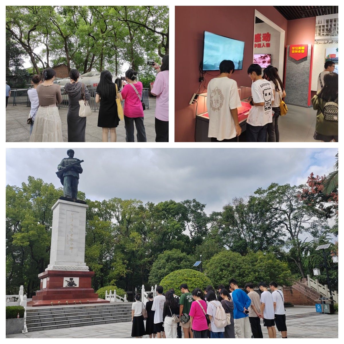 习近平总书记强调:我们要铭记一切为中华民族和中国人民作出贡献的英雄们,崇尚英雄,捍卫英雄,学习英雄,关爱英雄,戮力同心为实现“两个一百年”奋斗目标、实现中华民族伟大复兴的中国梦而努力奋斗!为深入实施“大思政课”建设工程,践行“四位一体双院制”教学模式,坚持不懈用习近平新时代中国特色社会主义思想铸魂育人,9月20日14时20分,中国近现代史纲要教研室联合鱼城书院开展本学期第一期“行走的思政课”系列实践活动。曹席、刘艳、龚魏锌三位老师同鱼城书院金鑫老师、二十四名同学一道,从重庆移通学院出发前往邱少云烈士纪念馆参观,以铭记历史,感怀英烈,筑牢红色信仰。