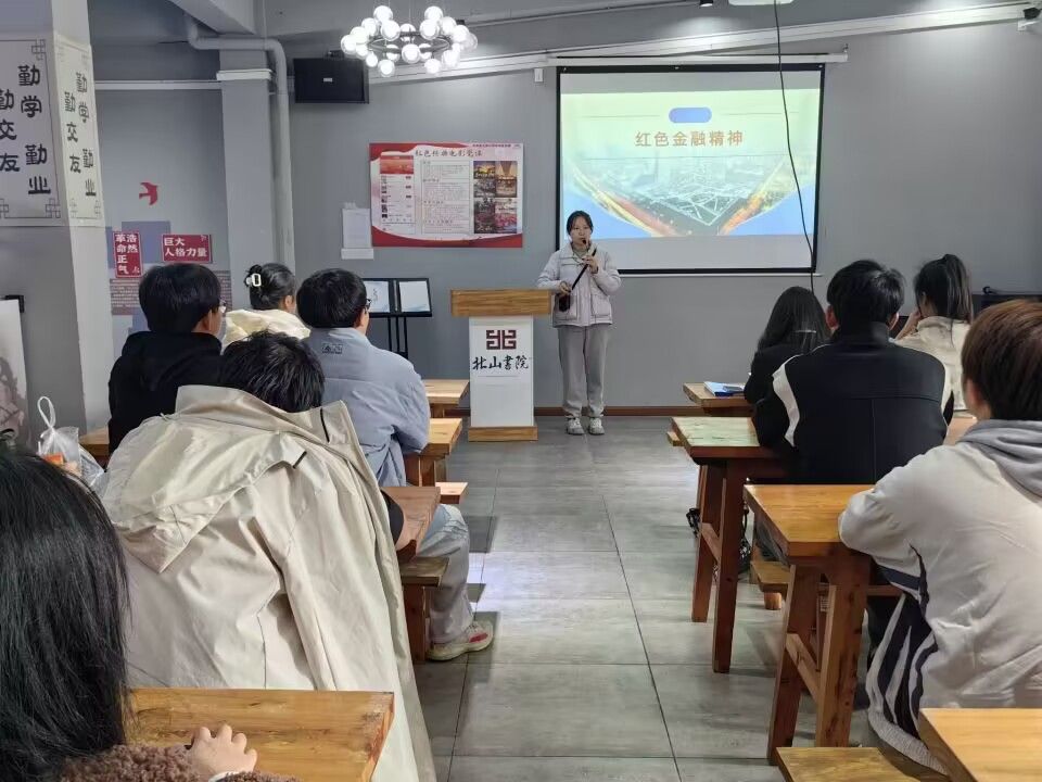 中国共产党自诞生之日起,就坚持牢牢把握金融事业发展的前进方向,不断探索金融支持革命战争以及在创立新政权、服务社会主义现代化建设中的重要作用,指引我国金融事业实现了一次又一次的跨越发展。在血与火的战争年代涌现出了一大批党的红色金融家,为学习老一辈金融家的革命精神 ,赓续红色金融血脉,促进现代金融发展,12月6日下午14时30分,马克思主义学院联合北山书院开展了“重温红色金融故事,赓续红色金融血脉”主题活动。此次活动由马克思主义学院思想道德与法治教研室李佩、贺来容老师主持,2022级广播电视编导和工商管理专业共计20余名学生参加。